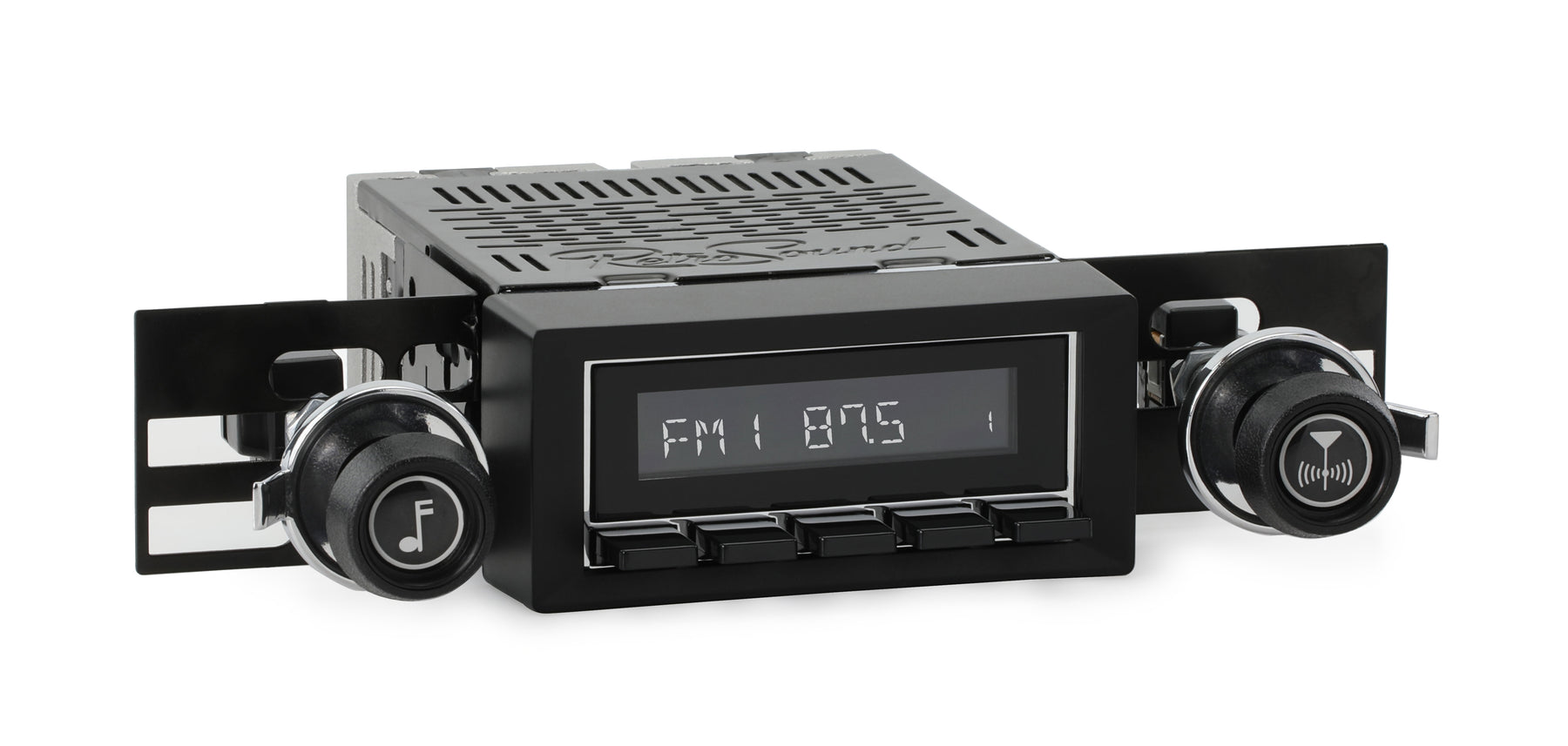 For a factory-like fit, RetroRadio includes RetroSound’s patented InfiniMount™ Brackets that can be adjusted during installation to achieve the proper width and depth of control shafts and a flush fitment of the Radio Face.