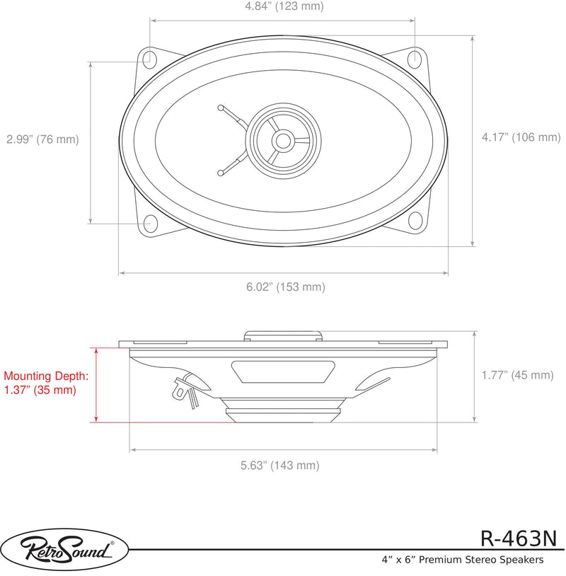 RetroSound® Premium Stereo Speakers provide the absolute best audio quality possible in your classic car or truck.  For high-power handling with an ultra-thin mounting depth, a Neodymium magnet structure is used with a dip-cut design to prevent distortion. The Santoprene® surrounds provide the most accurate audio reproduction possible, and the silk tweeters produce smooth and more natural-sounding highs.