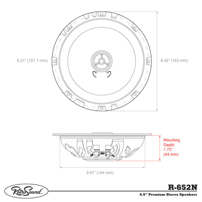 RetroSound® Premium Stereo Speakers provide the absolute best audio quality possible in your classic car or truck. For high-power handling with an ultra-thin mounting depth, a Neodymium magnet structure is used with a dip-cut design to prevent distortion. The Santoprene® surrounds provide the most accurate audio reproduction possible, and the silk tweeters produce smooth and more natural-sounding highs.