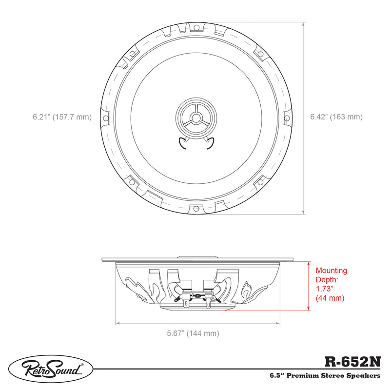 RetroSound® Premium Stereo Speakers provide the absolute best audio quality possible in your classic car or truck.  For high-power handling with an ultra-thin mounting depth, a Neodymium magnet structure is used with a dip-cut design to prevent distortion. The Santoprene® surrounds provide the most accurate audio reproduction possible, and the silk tweeters produce smooth and more natural-sounding highs.