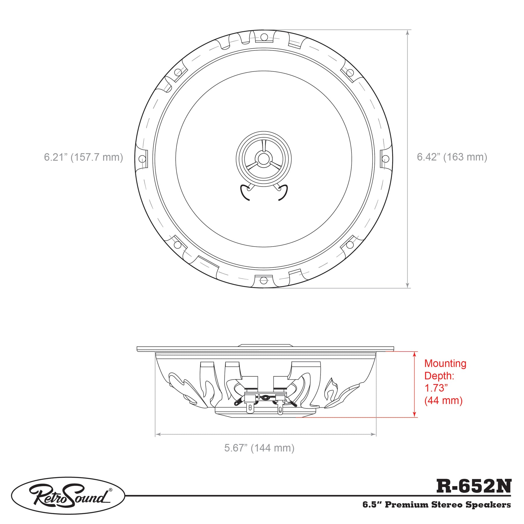 RetroSound® Premium Stereo Speakers provide the absolute best audio quality possible in your classic car or truck. For high-power handling with an ultra-thin mounting depth, a Neodymium magnet structure is used with a dip-cut design to prevent distortion. The Santoprene® surrounds provide the most accurate audio reproduction possible, and the silk tweeters produce smooth and more natural-sounding highs.