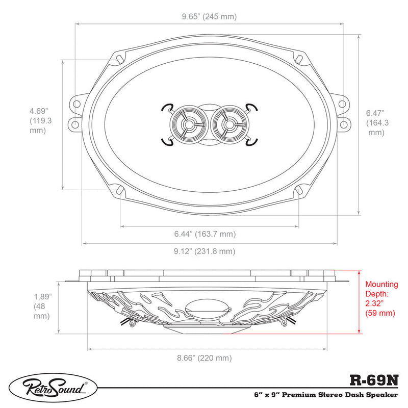 RetroSound R-69N Premium 6"x9" DVC Ultra-thin 2-way Dash Speaker