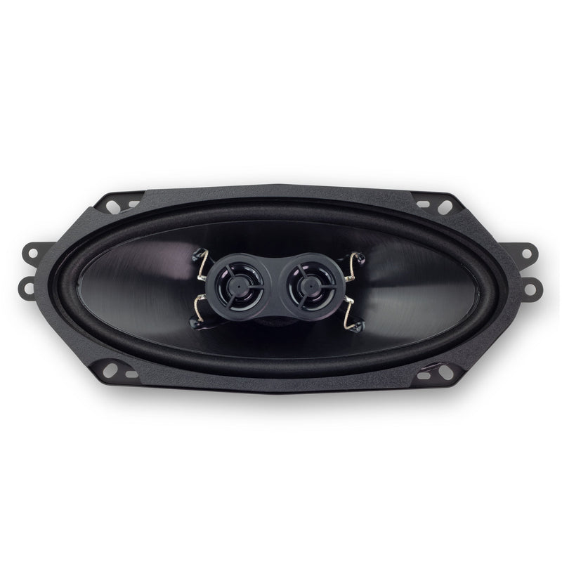RetroSound® Stereo Dash Speakers produce a stereo mix from a single speaker location. These dual voice coil speakers are designed to perform well in an open-air environment to provide the best possible audio quality in your classic car or truck. A ceramic magnet structure is used for high-power handling, with a dip-cut design to prevent distortion. The Mylar® tweeters are flush-mounted and produce crisp, clear highs. Treated foam surrounds provide exceptional audio reproduction with remarkable durability.