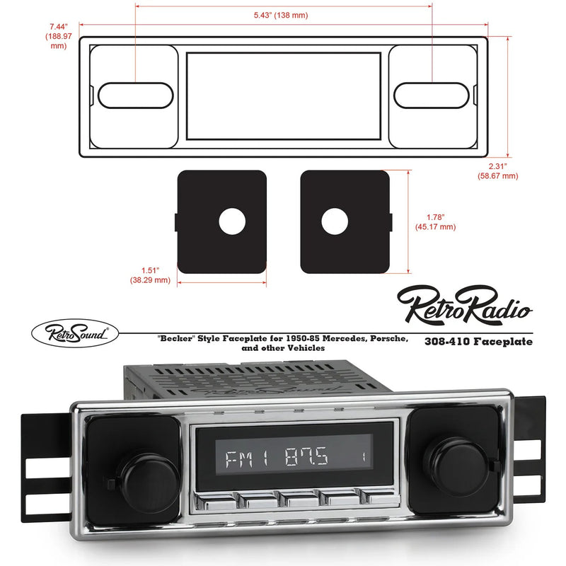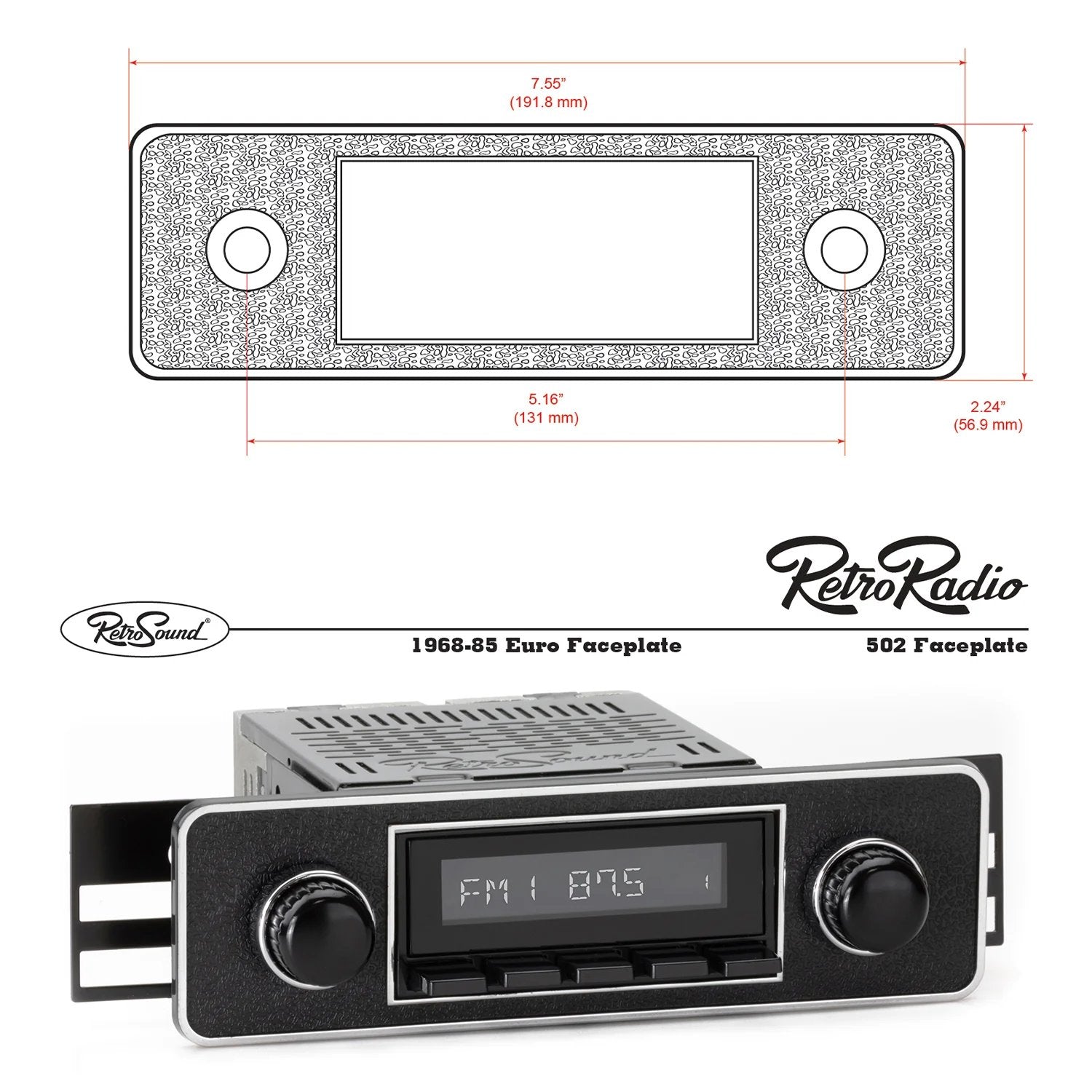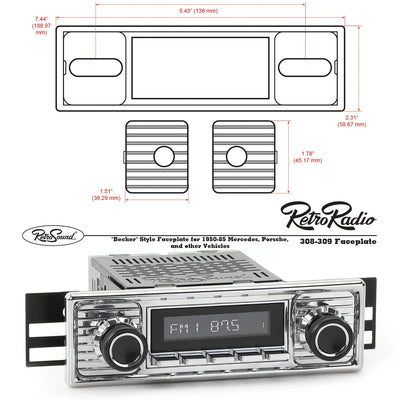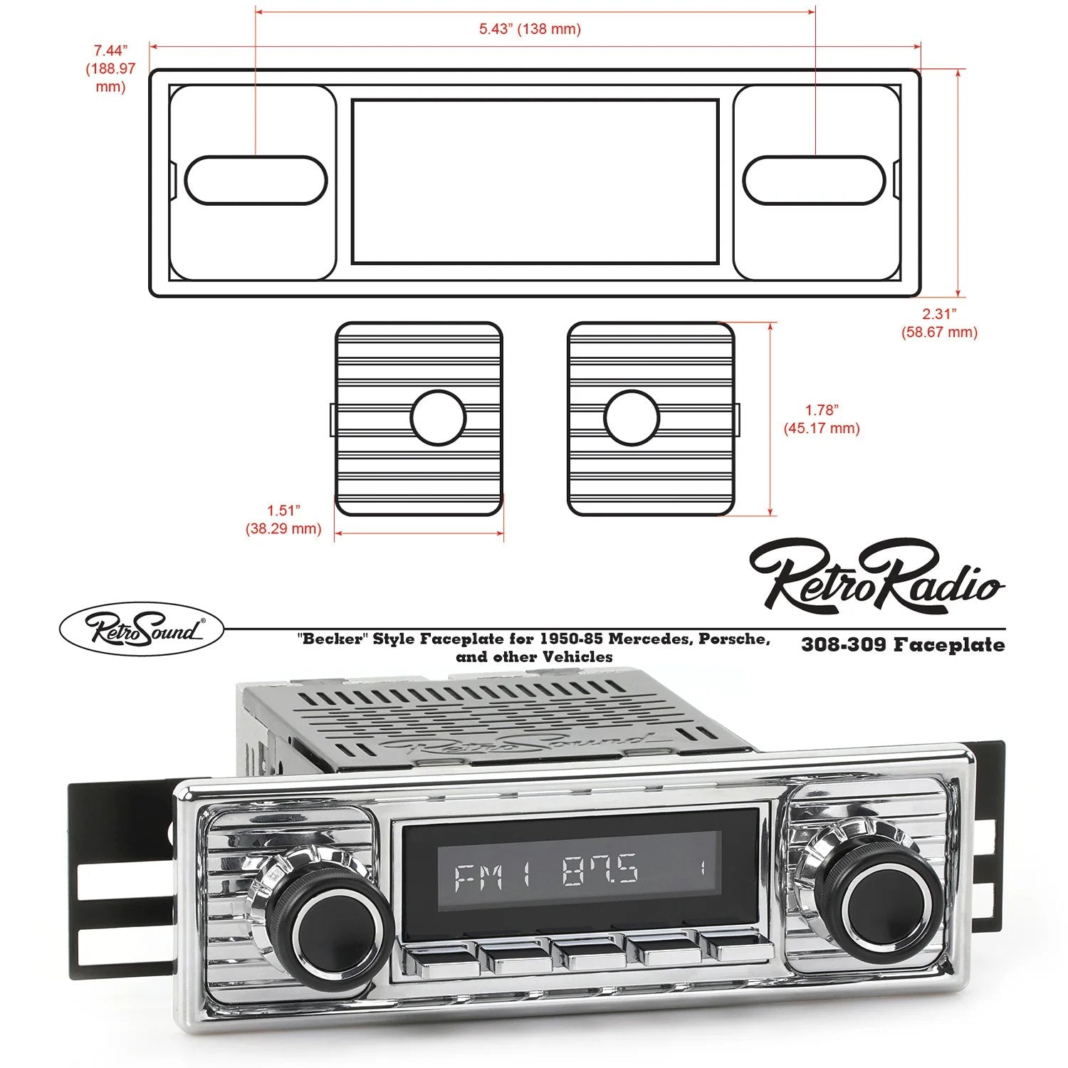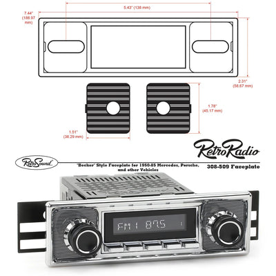 These kits enable you to mount a RetroSound® Motor 1, Motor 2 or Motor 4 radio into vehicles that have been either altered to a modern DIN opening (7-inches x 2-inches) or originally came equipped with a DIN-sized radio.