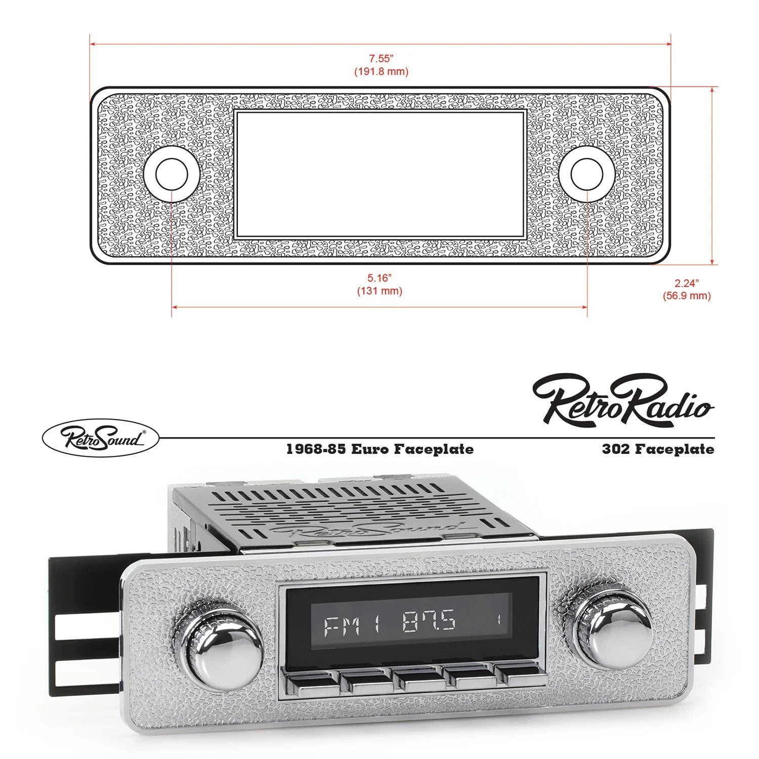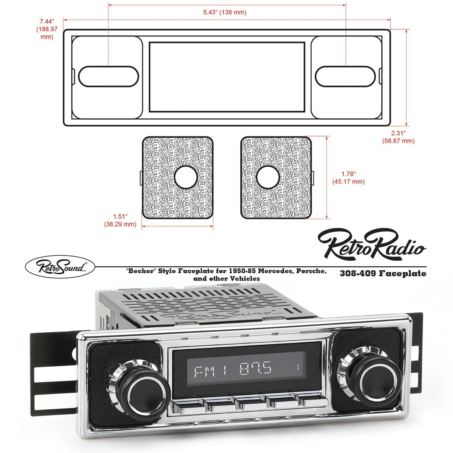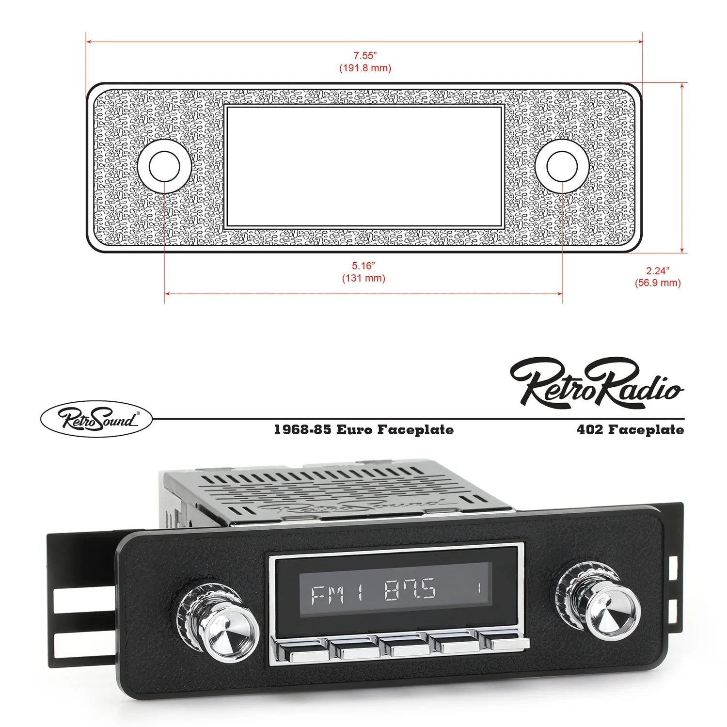 These kits enable you to mount a RetroSound® Motor 1, Motor 2 or Motor 4 radio into vehicles that have been either altered to a modern DIN opening (7-inches x 2-inches) or originally came equipped with a DIN-sized radio.